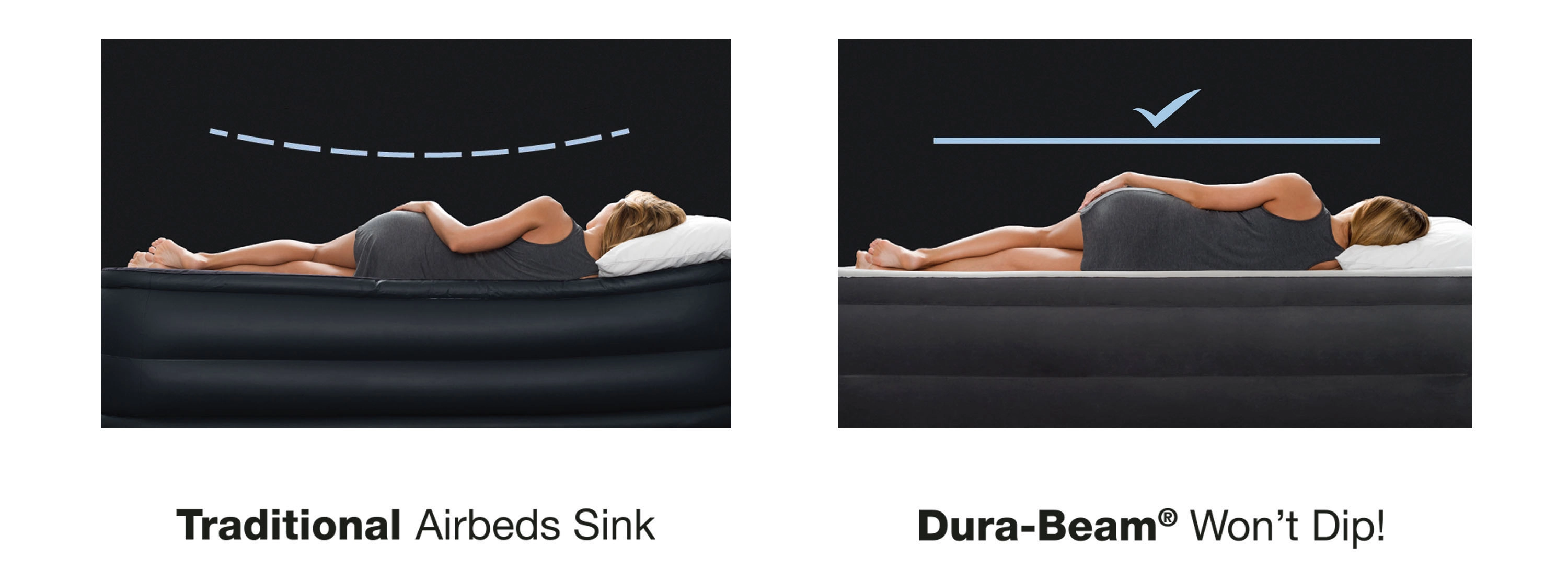 Izbaudiet stingras un vienlaikus ērtas piepūšamās gultas komfortu, kas piemērota gan viesiem, gan atpūtai ceļojumos. Pateicoties Fiber-Tech tehnoloģijai ar poliestera šķiedrām, matracim ir lielāka stingrība, ilgāks kalpošanas laiks un tas vienmērīgi sadala svaru pa visu virsmu. Viļņota virsma un kameru konstrukcija palīdz uzturēt pareizu mugurkaula stāvokli un samazina muguras un kakla sāpju risku.