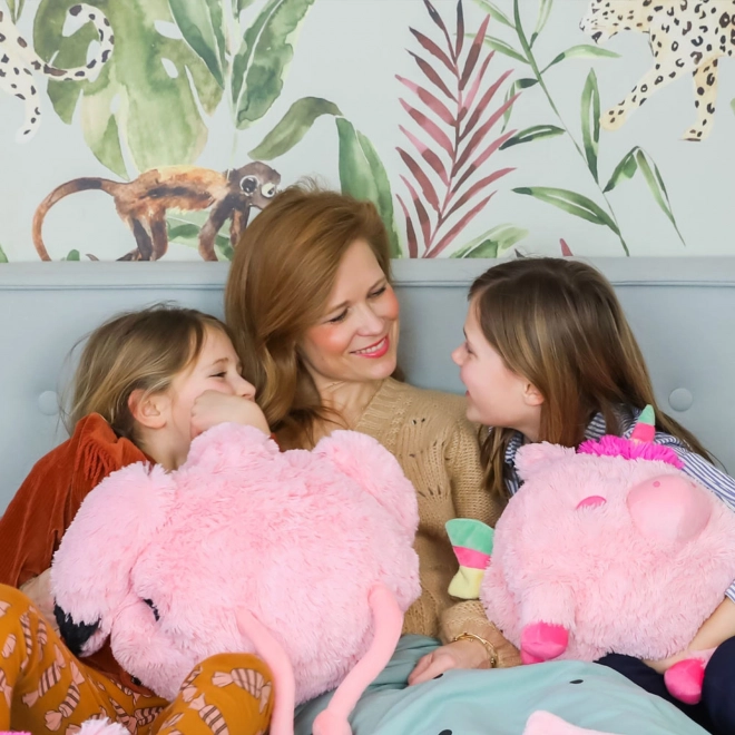 Atklājiet mūsu sildošā plīša flamingo burvību, kas ir ne tikai skaists dekors, bet arī praktisks bērnu sabiedrotais. Šis daudzfunkcionālais spilvens apvieno trīs dažādas funkcijas, kas padarīs jūsu bērna ikdienu vēl patīkamāku.