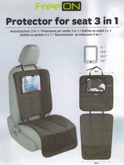 Automašīnas sēdekļa aizsargs un organizētājs 3-in-1 ir izstrādāts, lai nodrošinātu vispusīgu aizsardzību un praktiskumu. Aizsargā sēdekli no nospiedumiem un netīrumiem, pateicoties izturīgam materiālam, ko ir viegli tīrīt.