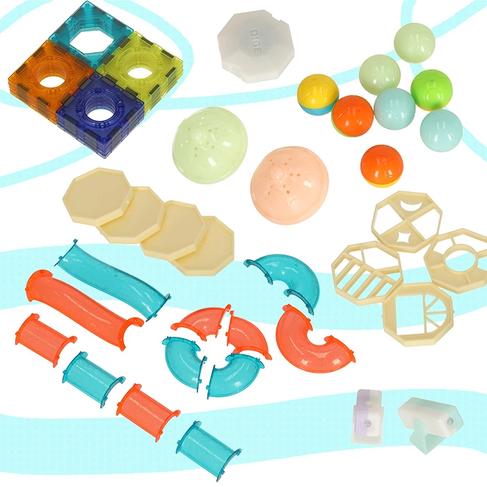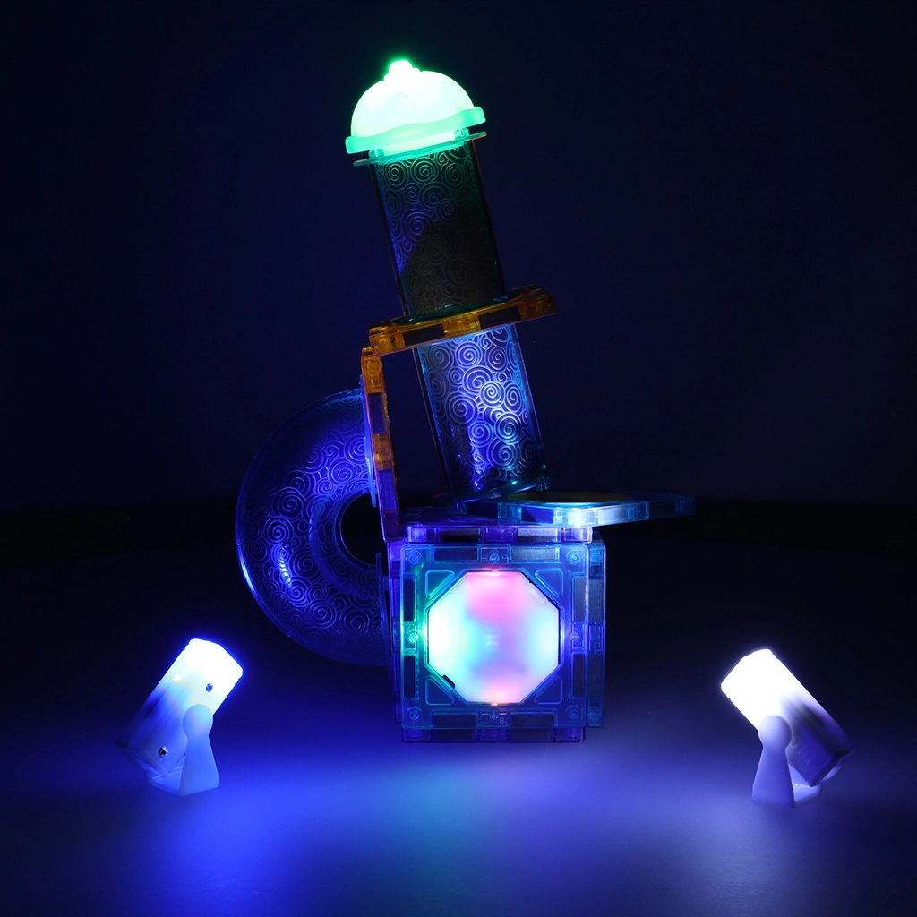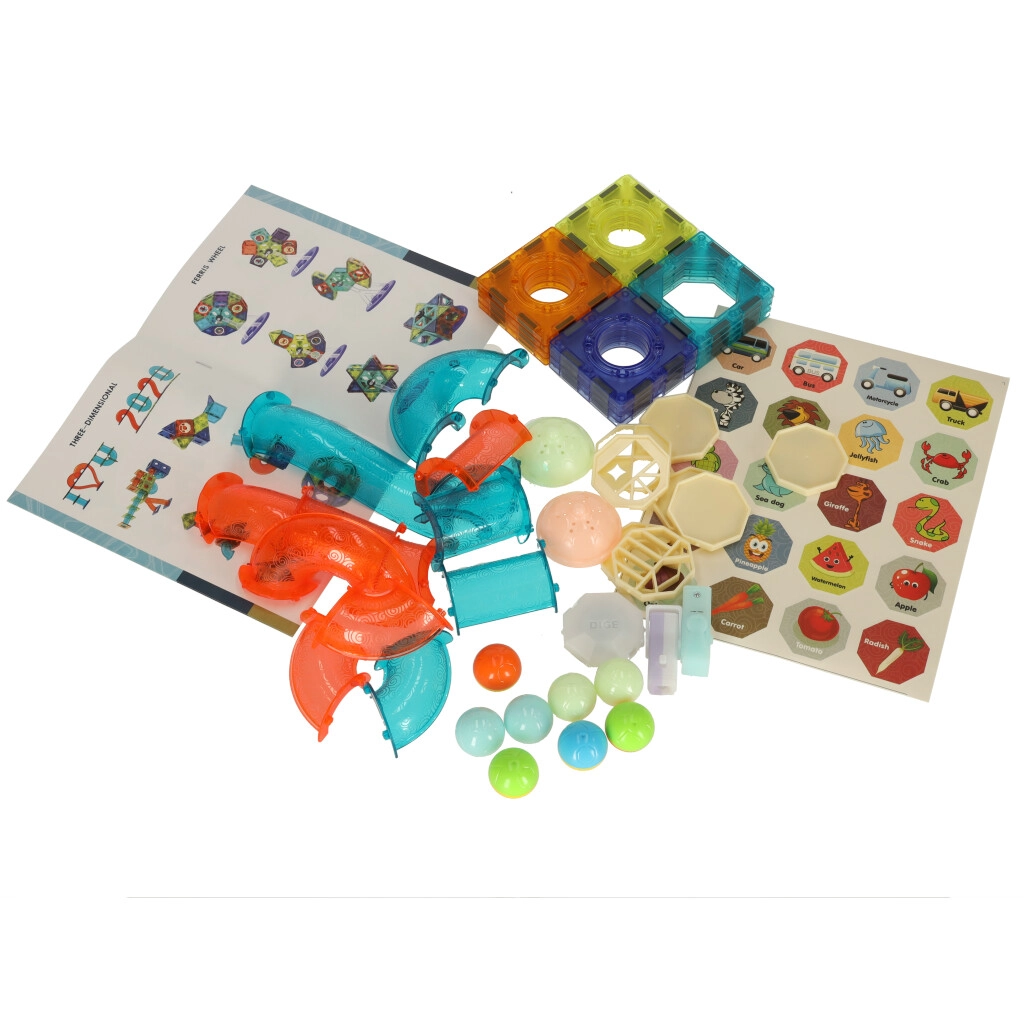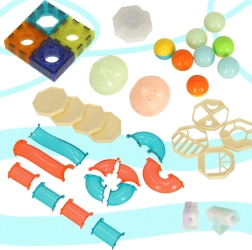 Uzbūvējiet bērniem aizraujošu lodīšu pasauli, kas pilna gaismas un kustības! Šis magnētisko klucīšu komplekts apvieno vieglu savienošanu ar caurspīdīgām detaļām un gaismas elementiem, lai izveidotu efektīgu lodīšu trasi, kas attīsta sīko motoriku, telpisko iztēli un loģisko domāšanu. Spīdošās lodītes un reflektori pārvērš katru braucienu par iespaidīgu gaismas izrādi – arī tumsā.
