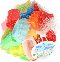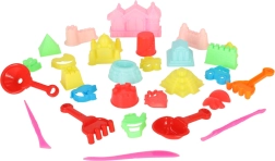 Krāsains 28 daļu smilšu komplekts piedāvā visu, kas bērniem nepieciešams smilšu laukā vai pludmalē: lāpstiņa, grābeklis, modelēšanas kociņi un plaša formiņu izvēle dažādās formās un izmēros. Izturīgs plastmasas materiāls, ērta lietošana un rotaļas, kas attīsta smalko motoriku un kreativitāti.