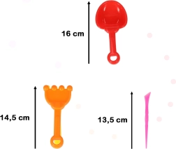 - Lāpstiņa: 16 cm; Grābeklis: 14,5 cm; Modelēšanas kociņš: 13,5 cm