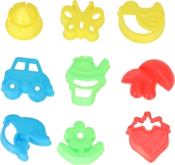 Dažādu izmēru un formu formiņas palīdz bērniem viegli veidot pilis, torņus un citas smilšu būves ar skaistām detaļām.