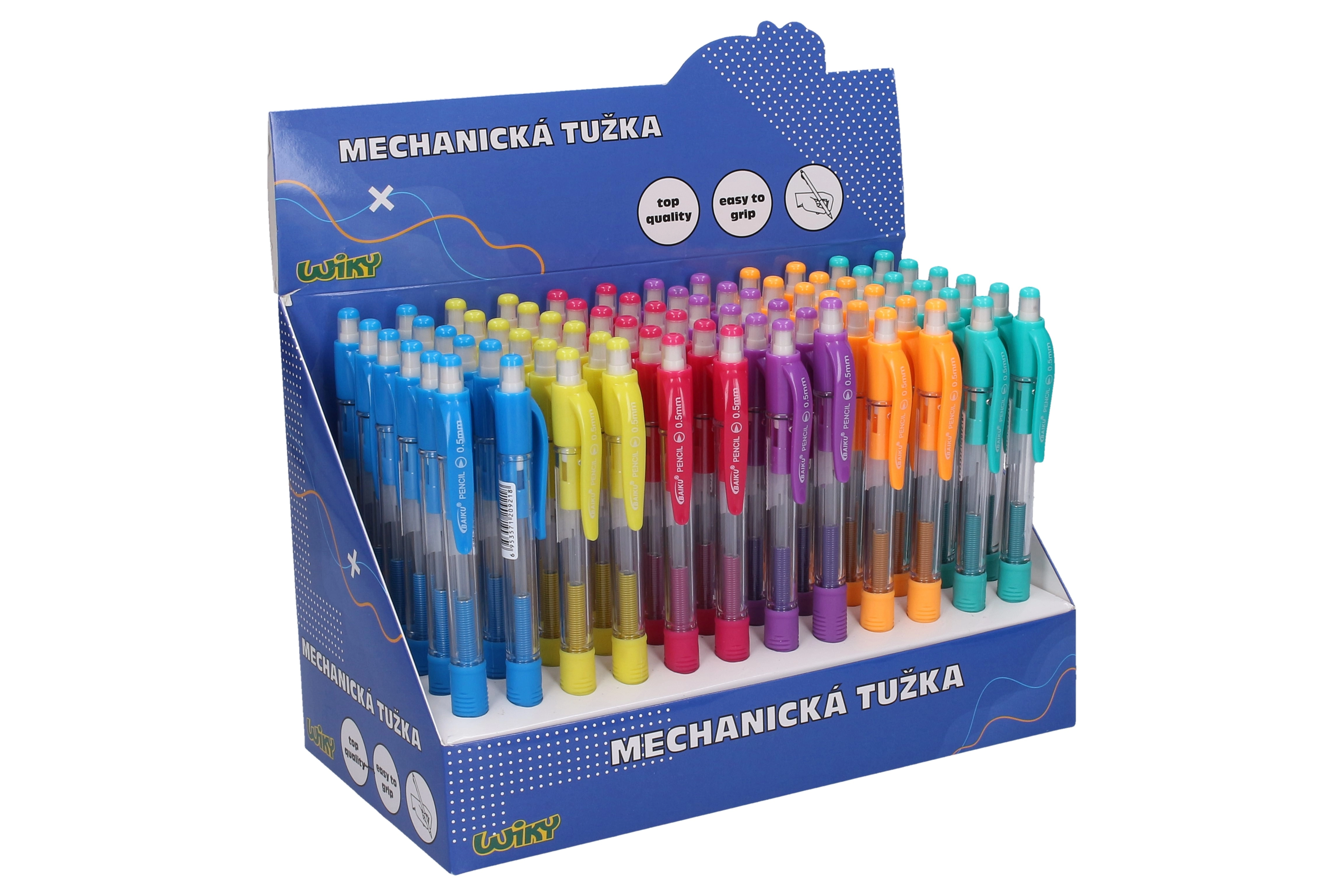Praktisks mehāniskais zīmulis ar 0,5 mm grafīta diametru precīzai rakstīšanai un zīmēšanai. Pieejami 6 dažādi krāsu varianti un ekonomisks iepakojums 72 gab. displeja kastē, piemērots skolām, birojiem un mājsaimniecībām.