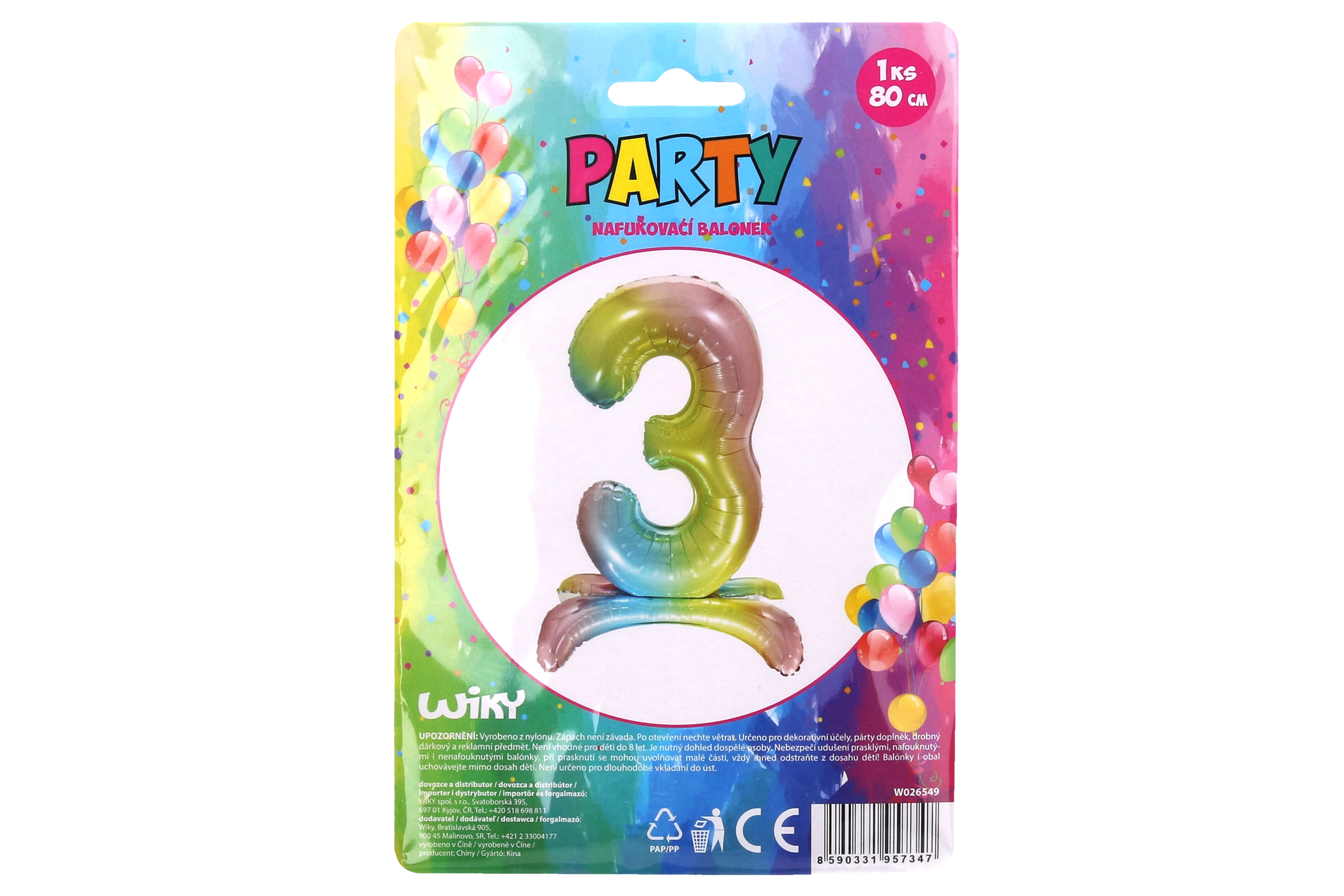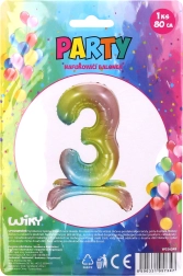 Šis varavīksnes balons cipara 3 formā ir lieliska izvēle dzimšanas dienu un citu īpašu notikumu svinībām. Tā košās varavīksnes krāsas un 80 cm izmērs padara to par nepamanāmu dekorācijas elementu, kas lieliski izskatās fotogrāfijās.