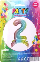 Šis elegantais balons cipara 2 formā varavīksnes krāsās ir lieliska izvēle dzimšanas dienām, jubilejām un tematiskām ballītēm. Pateicoties izteiksmīgam spīdumam un pievilcīgām krāsu pārejām, tas veido pamanāmu dekorāciju, kas lieliski izskatās fotogrāfijās.