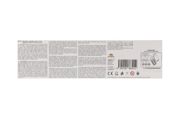 Rotaļlieta darbojās ar 3x AG13 baterijām, kas jau ir iekļautas komplektā, tāpēc izklaide var sākties nekavējoties. Ideāli piemērota bērniem no trīs gadu vecuma.