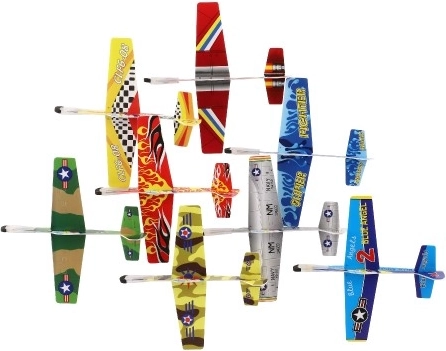 Mūsu lidmašīnas ir pieejamas vairākos košos krāsu rakstos, lai katrs bērns atrastu savu iecienītāko.