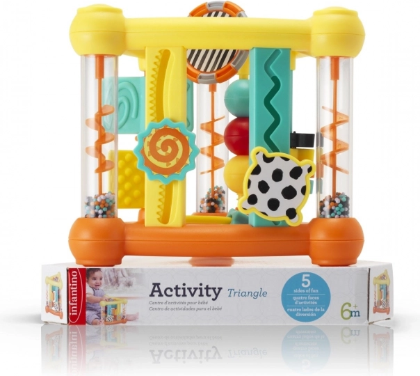 INFANTINO trijstūra formas aktīvais centrs ir izstrādāts gan izklaidei, gan mācībām. Pateicoties kompaktajai formai, to ir viegli paņemt līdzi jebkur un bērnu vienmēr aizraus dažādās aktivitātes uz katras malas. Veicina acu–roku koordināciju, atklāšanu un koncentrēšanos.