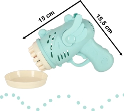 Šis burbuļu pistoles modelis ir izstrādāts ar rotaļīgu spārnu dizainu, kas patiks ikvienam.