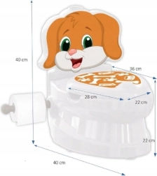 - Rotaļīgs suņa dizains motivē bērnus lietot podiņu.