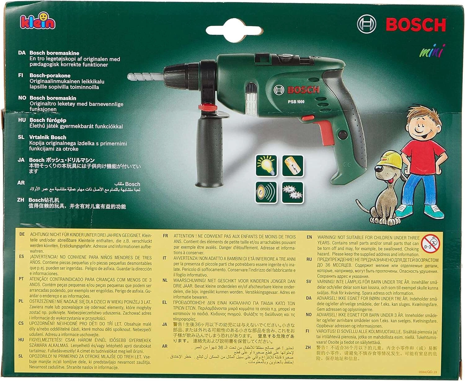 Šī bērnu urbjmašīna ikoniskajā Bosch zaļajā krāsā uzticami atdarina īstu rīku un piedāvā bērniem aizraujošu un drošu “amatnieku” spēli. LED gaisma un reālistiska skaņa nospiežot sprūdu pastiprina spēles pieredzi un attīsta iztēli un motoriku.