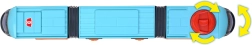Uz tramvaja jumta novietotais rotējošais logotips ļauj bērniem intuitīvi kontrolēt braukšanas virzienu – pa labi vai pa kreisi.