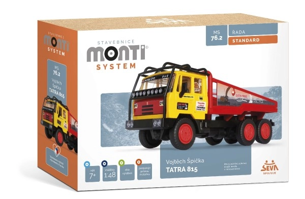 Konstruktors Monti System Tatra 815 Vojtěch Špička piedāvā unikālu veidu, kā salikt modeli bez nepieciešamības lietot līmi vai krāsas. Detaļas ir iepriekš tonētā plastikāta un pielāgotas vienkāršai montāžai.