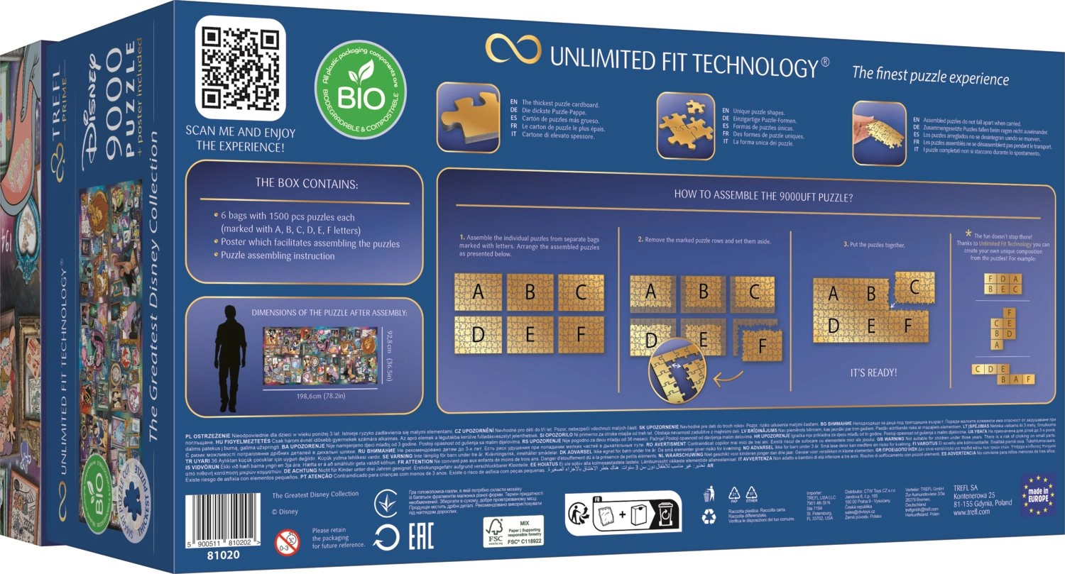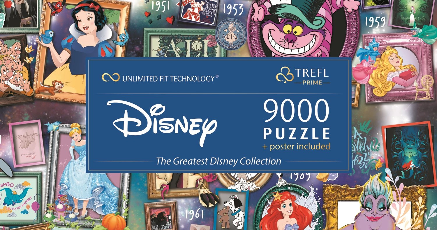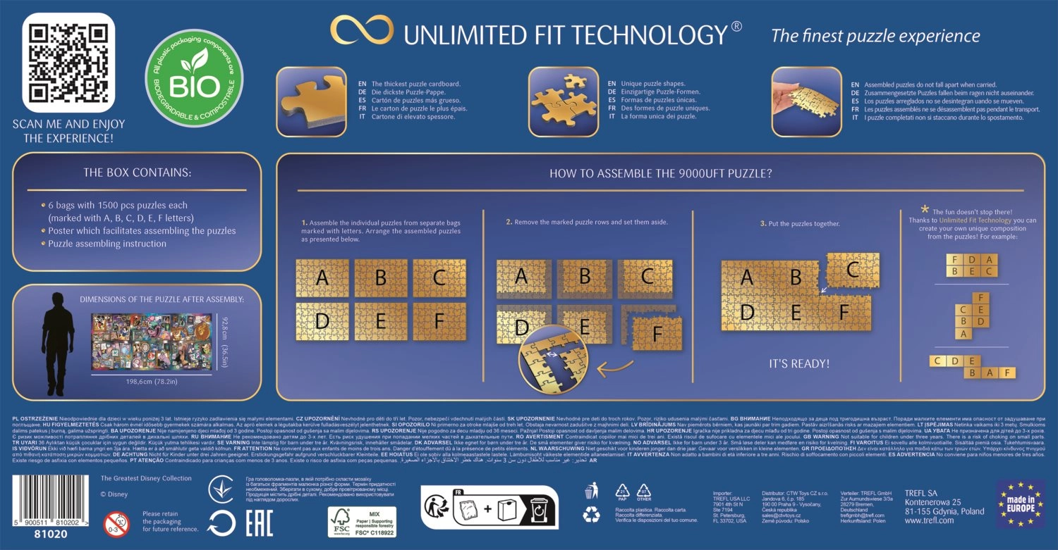 Šīs lielās puzles aizvedīs jūs burvīgā ceļojumā pa Disney pasauli. Ar kopējo izmēru 1985,6 x 928 mm jūs varēsiet pārbaudīt savu pacietību un prasmes, vienlaikus pavadot laiku ar ģimeni un draugiem.