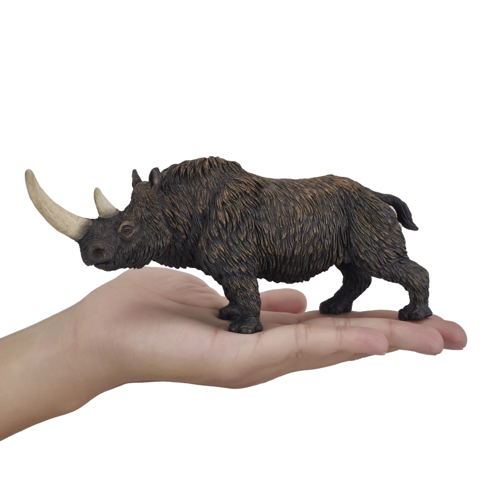 Šī kvalitatīvā vilnāinā degunradža figūra, viena no lielākajiem aizvēsturiskajiem zīdītājiem, sniedz bērniem un pieaugušajiem iespēju iepazīt izcilus ledus laikmeta radījumus. Pateicoties roku krāsojumam un precīzai modelēšanai, tā izceļas ar autentiskām detaļām, kas pastiprina reālistisku izskatu un izglītojošo vērtību.