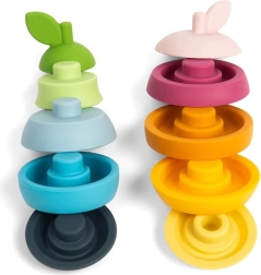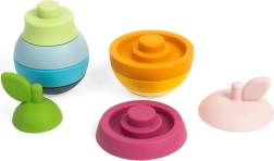 Silikons ir izturīgs, netoksisks un patīkams taustei – to ir viegli uzturēt tīru, tas neuzsūc smakas vai traipus, un rotaļlietu var mazgāt trauku mazgājamajā mašīnā. Augļu motīvs dabiski aicina spēlēties, veicina iztēli un palīdz uztvert krāsas un izmērus.