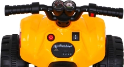 Viegls un stabils bērnu elektriskais kvadracikls ar 6 V akumulatoru un 25 W motoru piedāvā vienkāršu vadību, braukšanu uz priekšu un atpakaļ, kā arī izturīgus plastmasas riteņus. Ideāli piemērots pirmajiem izbraucieniem gan dārzā, gan mājās. Kompakti izmēri, drošs ātrums un ērta gāzes vadība uz roktura nodrošina gan izklaidi, gan komfortu.