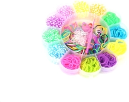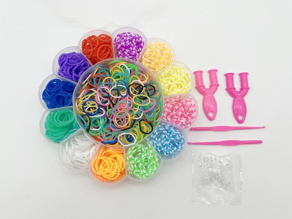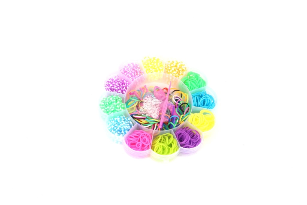 Radošs komplekts gan maziem, gan lieliem veidotājiem: 900 krāsainu gumiju zieda formas kastītē, papildinātas ar roku stelles, āķi un saites. Veidojiet oriģinālas gumiju rokassprādzes, piekariņus un rotājumus, attīstiet veiklību un izbaudiet stundām ilgu izklaidi.