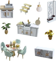 - Bagātīgi piederumi – mēbeles, dekorācijas un sīkas lietas reālistiskam izskatam.
