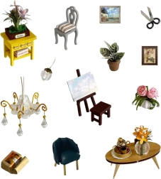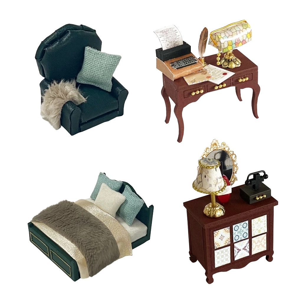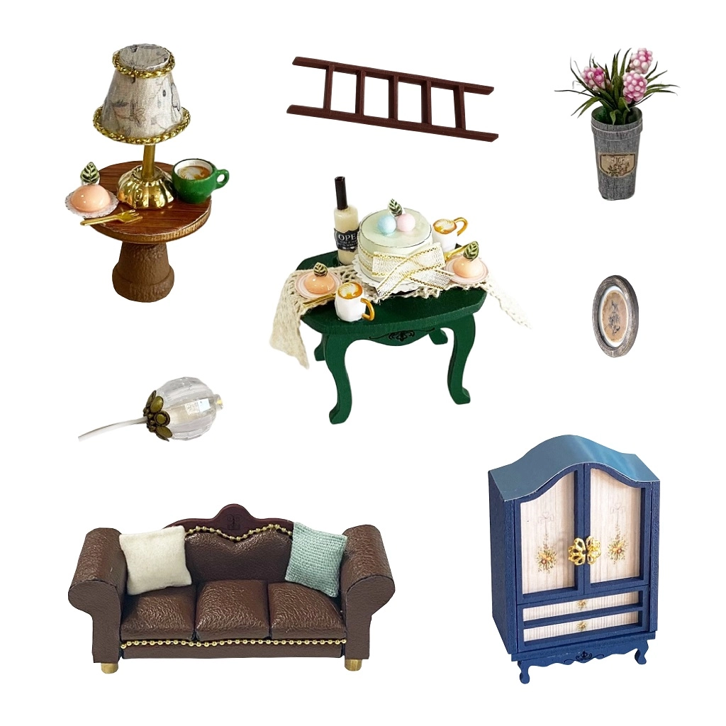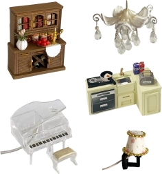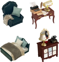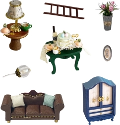 Komplektā ietilpst miniatūras mēbeles un dekorācijas, kuras viegli salikt un izkārtot. Katrs sīkums pastiprina pabeigtā modeļa reālistisko izskatu.