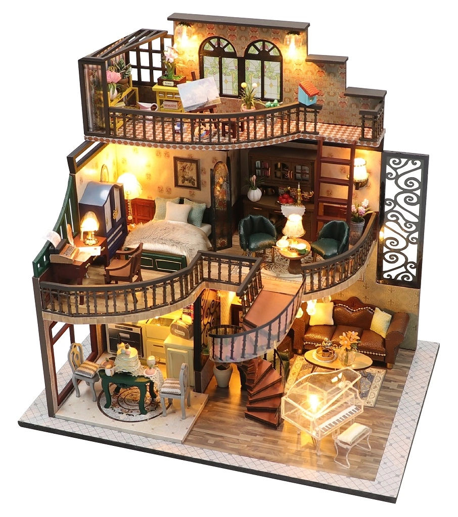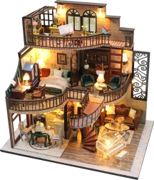 Salieciet detalizētu mini namiņu un izbaudiet stundām ilgu radošu nodarbi. Katrs elements – no mēbelēm līdz sīkām dekorācijām – ir rūpīgi pārdomāts. Iededzot LED gaismiņas, modelis iegūst mājīgu atmosfēru, kas lieliski izskatīsies gan uz plaukta, gan uz rakstāmgalda.