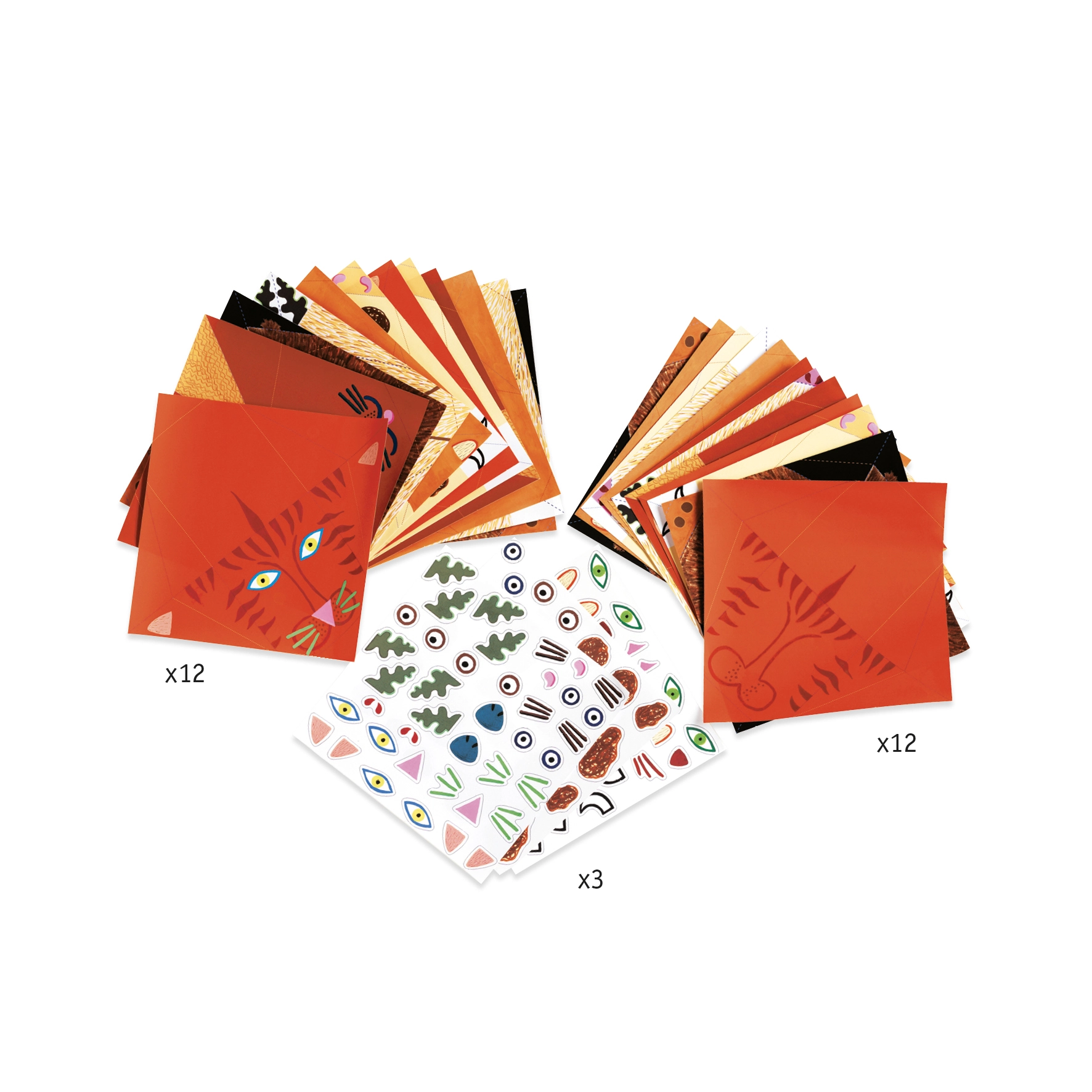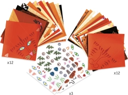 Iepakojumā iekļauti 24 krāsaini papīri 4 komplektiem pa sešiem dzīvnieciņiem, 3 uzlīmju lapas un detalizēts attēlots ceļvedis. Pateicoties skaidriem soļiem, locīšana ir vienkārša pat mazākiem bērniem.