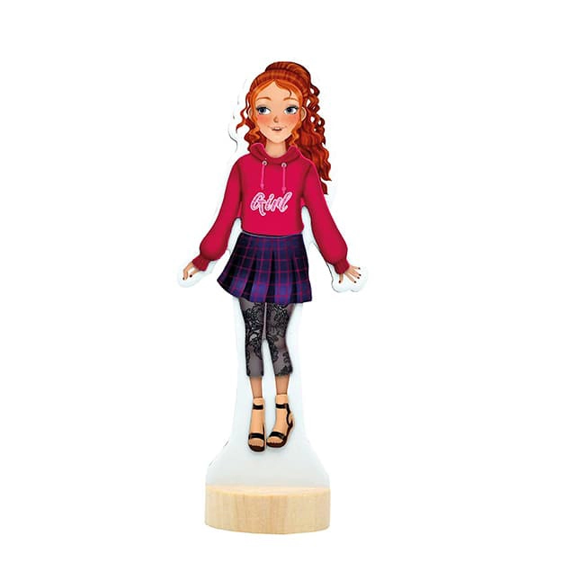 Šī magnētiskā lellīte iepriecinās mazos modes un radošuma cienītājus. Pateicoties 30 magnētiskajām detaļām, var viegli kombinēt dažādus tērpus, mainīt apavus un aksesuārus un ik reizi izdomāt jaunu stilu. Stabilā koka pamatne notur lellīti spēles laikā un atvieglo pabeigto tērpu izstādīšanu.