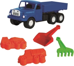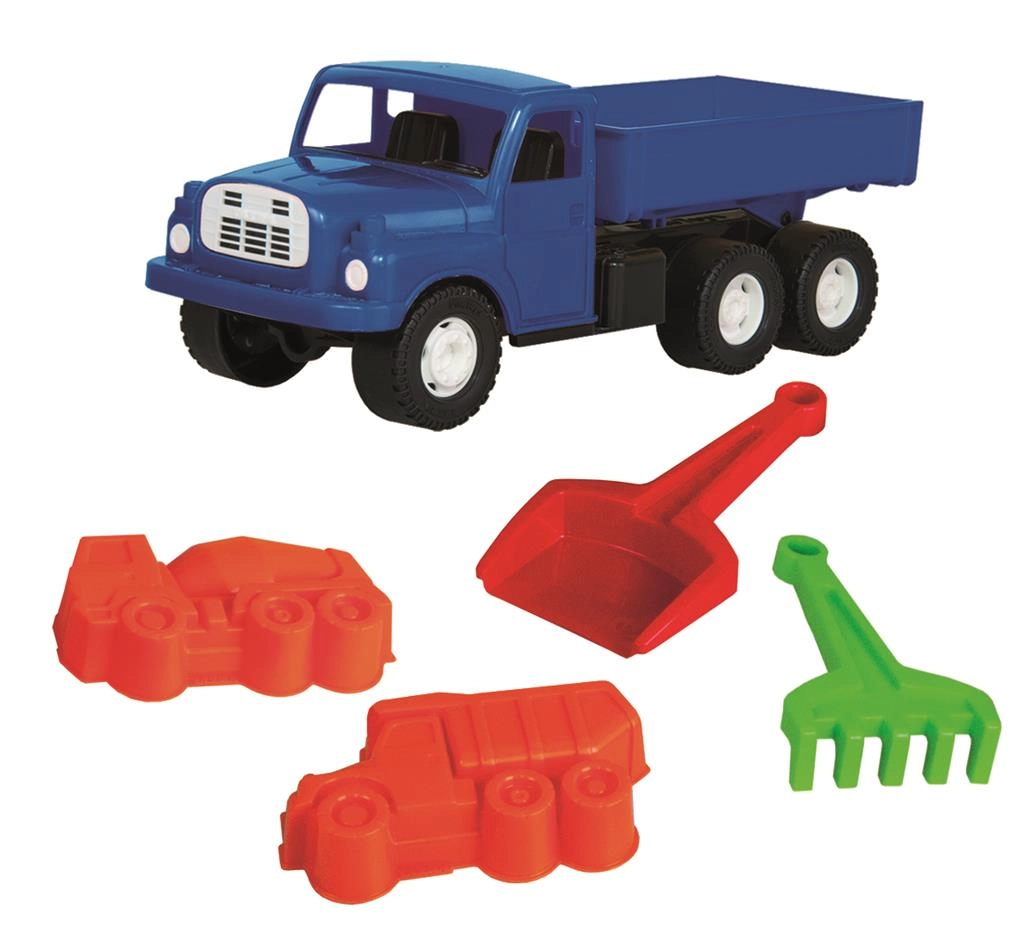Ar šo smilšu komplektu bērni izbaudīs daudz radošas izklaides. Izturīgais Tatra bortkravas auto (30 cm) vedīs smiltis, kūkas un formiņas, bet kravas auto un betona maisītāja formiņas rosinās viņu iztēli. Grābeklis un ergonomiski veidotā lāpstiņa palīdzēs ceļu, pils un tuneļu būvē.