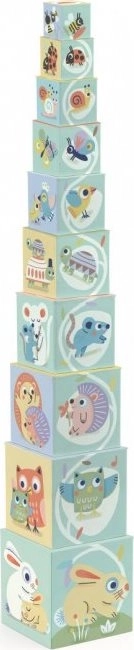 Ar kastīšu torni Meža dzīvnieki bērni ne tikai būvē klucīšus, bet arī mācās tos salikt citu citā. Šī rotaļlieta veicina sīkās motorikas un loģiskās domāšanas attīstību. Būvējot bērni apgūst atpazīt pamatkrāsas, formas un skaitļus.