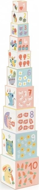 Komplektā ir 10 klucīši, kurus var salikt citu uz cita līdz 89 cm augstumam. Lielākā klucīša izmēri ir 15 x 15 x 15 cm.