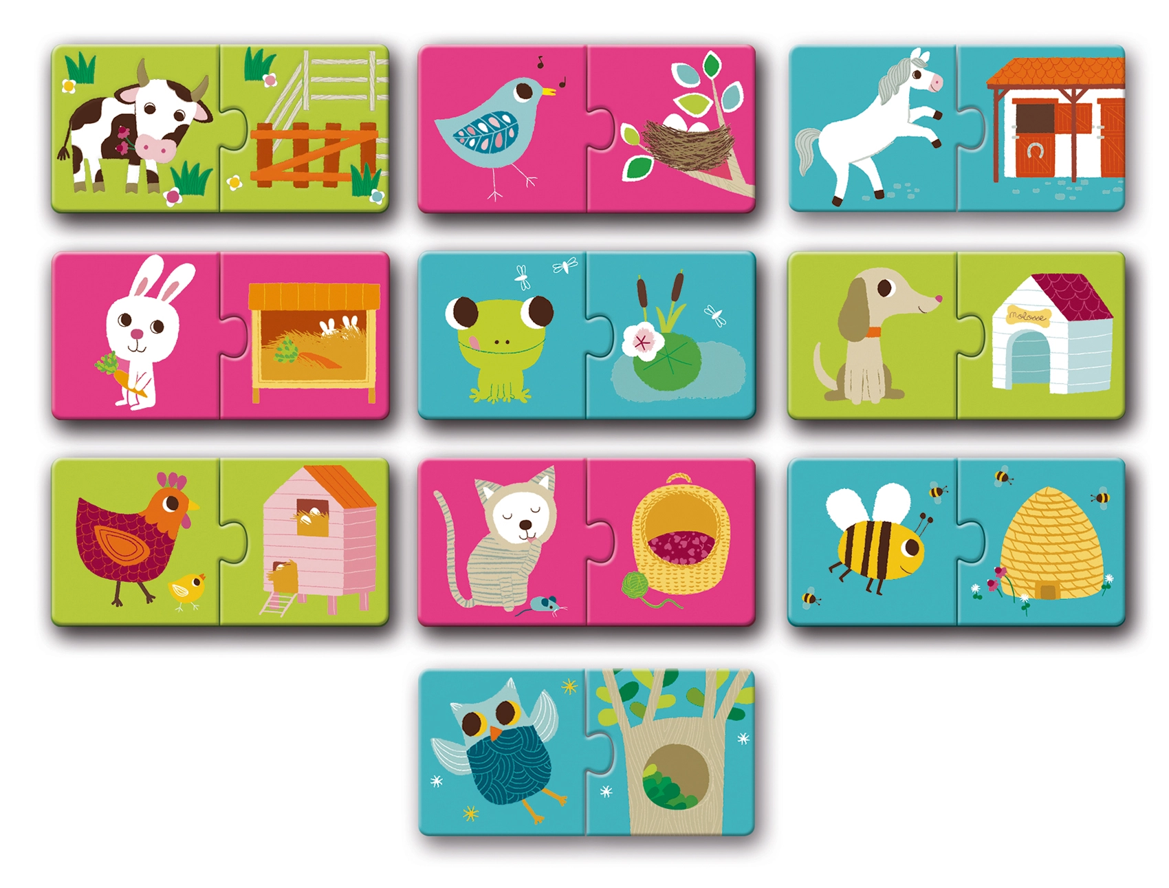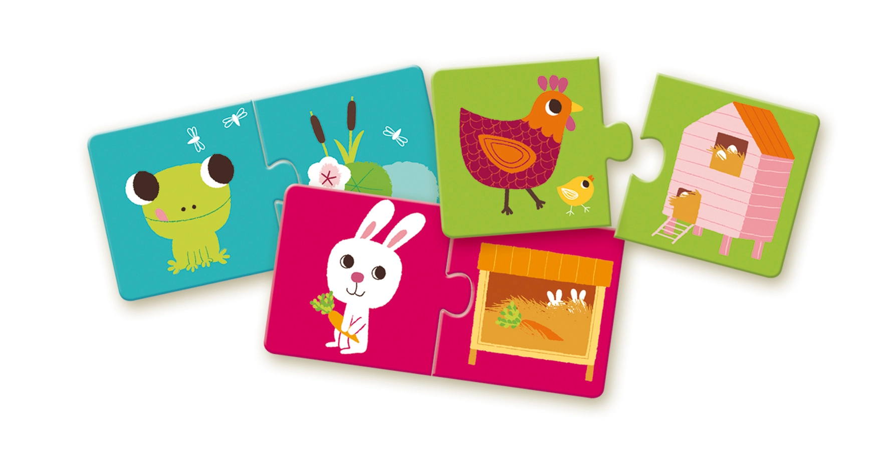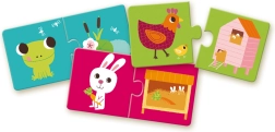 Šīs vienkāršās divdaļīgās puzles ir ideālas bērniem, kuri sāk iepazīt pužļus. Lielie un izturīgie gabaliņi ar aptuveni 3 mm biezumu atvieglo salikšanu un nodrošina ilgu kalpošanas laiku.