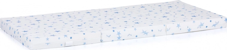 Praktisks saliekamais matracis 60 × 120 cm ar zilām zvaigznītēm ir ideāls bērnu gultiņai un ceļošanai. Piedāvā ērtu gulēšanu, vienkāršu salocīšanu un vieglu pārnēsāšanu. Noņemamo pārvalku var mazgāt veļasmašīnā līdz 30 °C, tāpēc kopšana ir ātra un vienkārša.