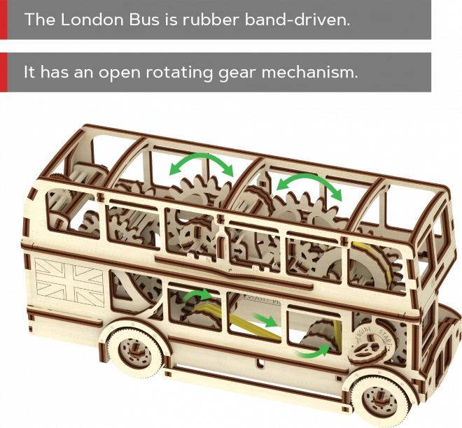 Londonas autobusa modelis ir ne tikai Londonas ceļu simbols, bet arī lieliska dāvana jebkurai situācijai. Tas ietver ar rokām saliktu rotējošu mehānismu un darbojas ar gumijas piedziņu, kas imitē īstu kustību. Sāciet jaunu hobiju un atklājiet klasisku eleganci bez plastmasas iepakojuma.