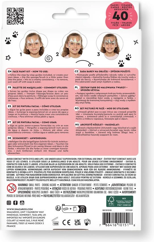 Izbaudiet jautrību ar Snazaroo sejas un ķermeņa krāsu komplektu. Ideāli piemērots dažādiem gadījumiem, piemēram, karnevāliem, svinībām vai Helovīnam. Krāsu uzklāšana ir vienkārša, pateicoties komplektā iekļautajiem otiņām un sūklīšiem: