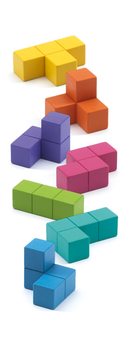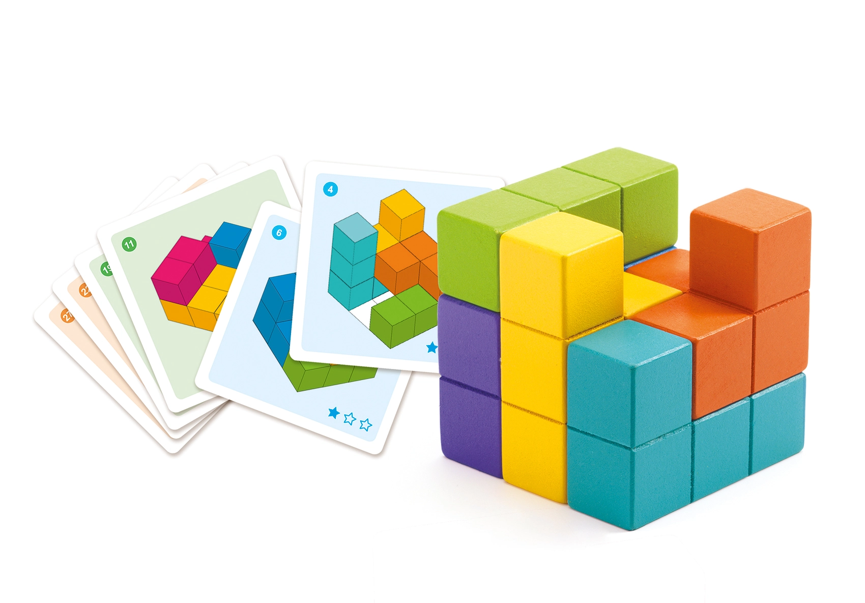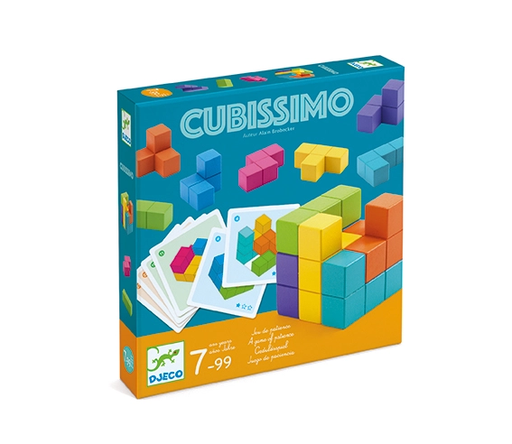 Meklējat gudru un skaisti izstrādātu rotaļlietu, kas gan izklaidē, gan attīsta loģiku? DJeco Cubissimo apvieno koka izpildījumu, košas krāsas un pārdomātus uzdevumus no viegliem līdz sarežģītiem. Izveidojiet starta pozīciju pēc uzdevuma kartes un ar atlikušajām detaļām pabeidziet kubu vajadzīgajā formā. Katrs risinājums trenē telpisko domāšanu, loģisko spriestspēju un smalko motoriku.
