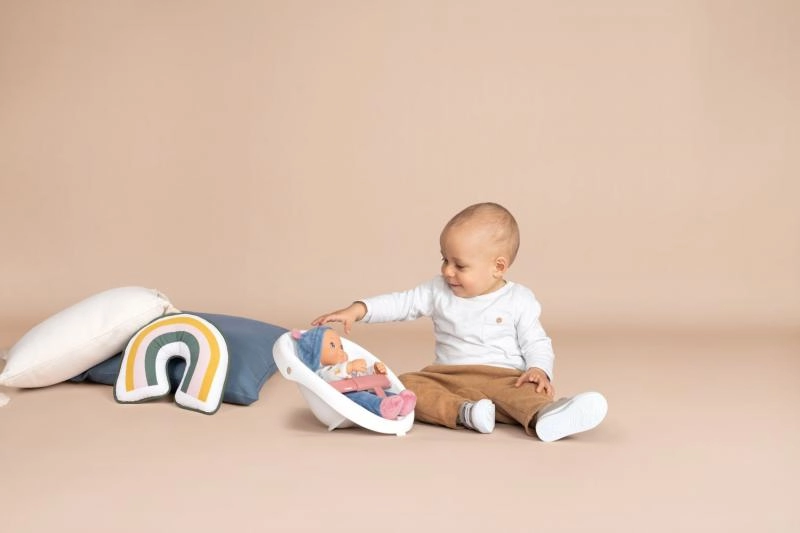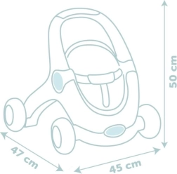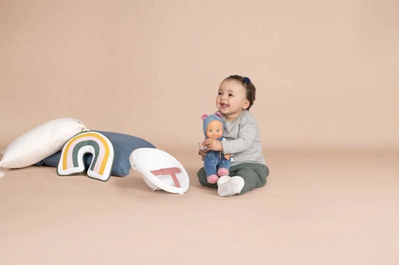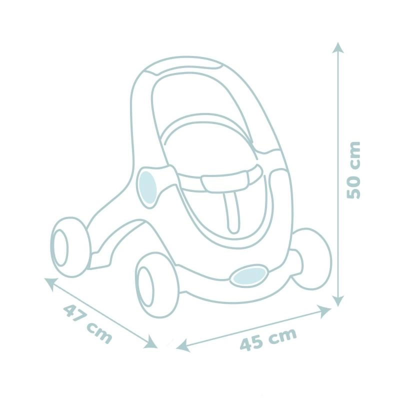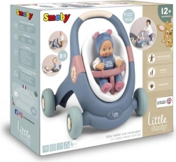 Izturīga konstrukcija ar 4 platiem riteņiem un vienmērīgi regulējamu bremzi nodrošina stabilitāti un drošību pirmajos soļos. Komplektā ir mīksta Little Smoby lellīte (30 cm) – kvalitatīva plastmasas sejiņa, maigs auduma ķermenītis – ideāli apskāvieniem, iemidzināšanai un ikdienas aprūpei.