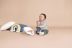 Mīksts auduma ķermenis un kvalitatīva plastmasas sejiņa aicina uz mīļošanu, kopšanu un radošās iztēles, kā arī sīkās motorikas attīstību.
