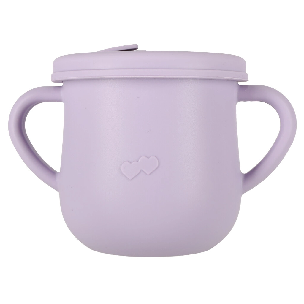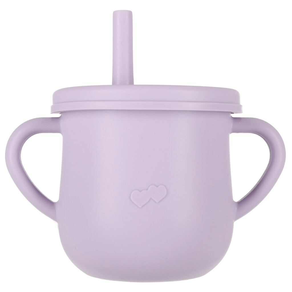 Treniņkrūze ar diviem rokturiem, diviem vāciņiem un salmiņu palīdz bērniem apgūt patstāvīgu dzeršanu; iekšējās atzīmes atvieglo dozēšanu.