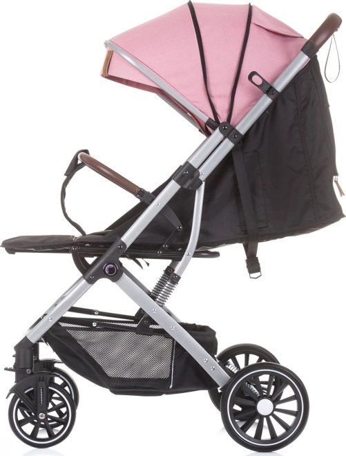 - Drošība: 5 punktu jostas, savienotā bremze uz aizmugurējiem riteņiem, drošības siksna uz roktura