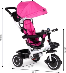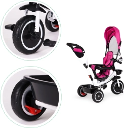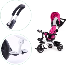 Trīsritenis ir aprīkots ar drošības rāmi un piecu punktu jostām, kas nodrošina, ka jūsu bērns vienmēr ir drošībā.