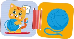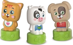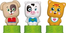 Trīs figūriņas – kaķis, govs un suns – mudina bērnus radošai spēlei, attīsta iztēli un veicina pirmās loģiskās asociācijas.