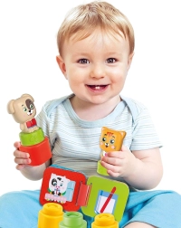 Šis radošais CLEMENTONI komplekts veicina bērnu dabisko ziņkāri. Mīkstie un elastīgie klucīši viegli spiežami, droši saliekami un aicina pieskarties, pateicoties atšķirīgām virsmas faktūrām. Ilustrētā grāmatiņa ar dzīvnieciņiem palīdz attīstīt agrīnu uztveri, valodu un vecāka–bērna mijiedarbību.