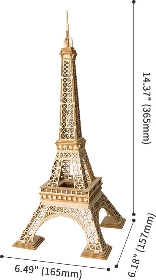 Iegremdējieties salikšanas pasaulē un izveidojiet savu Eifeļa torni tieši mājās. Šis unikālais 3D koka modelis no Robotime Rolife ir izgatavots no kvalitatīva liepas saplākšņa un nodrošinās stundām ilgu izklaidi.