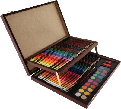 Radošais mākslas komplekts ir lielisks risinājums ikvienam, kurš mīl radīt. Pateicoties praktiskajam koka futrālim, visas piederības ir pārskatāmi sakārtotas un vienmēr gatavas lietošanai.