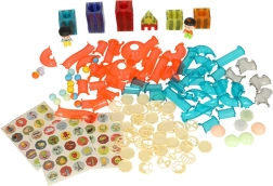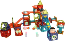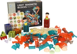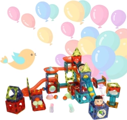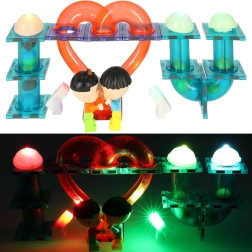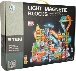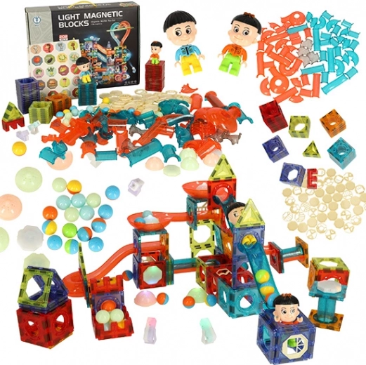 Plašs magnētisko konstruktoru komplekts bērniem no 3 gadu vecuma ļauj uzbūvēt iespaidīgu lodīšu trasi, kā arī 2D/3D būves. Puscaurspīdīgie elementi savienojas ar magnētiem, un daļa detaļu spīd – tostarp lodītes, kas kustībā iedegas un rada brīnišķīgu gaismas šovu. Komplekts attīsta sīko motoriku, telpisko iztēli un loģisko domāšanu un ir ideāli piemērots kopīgai ģimenes izklaidei.