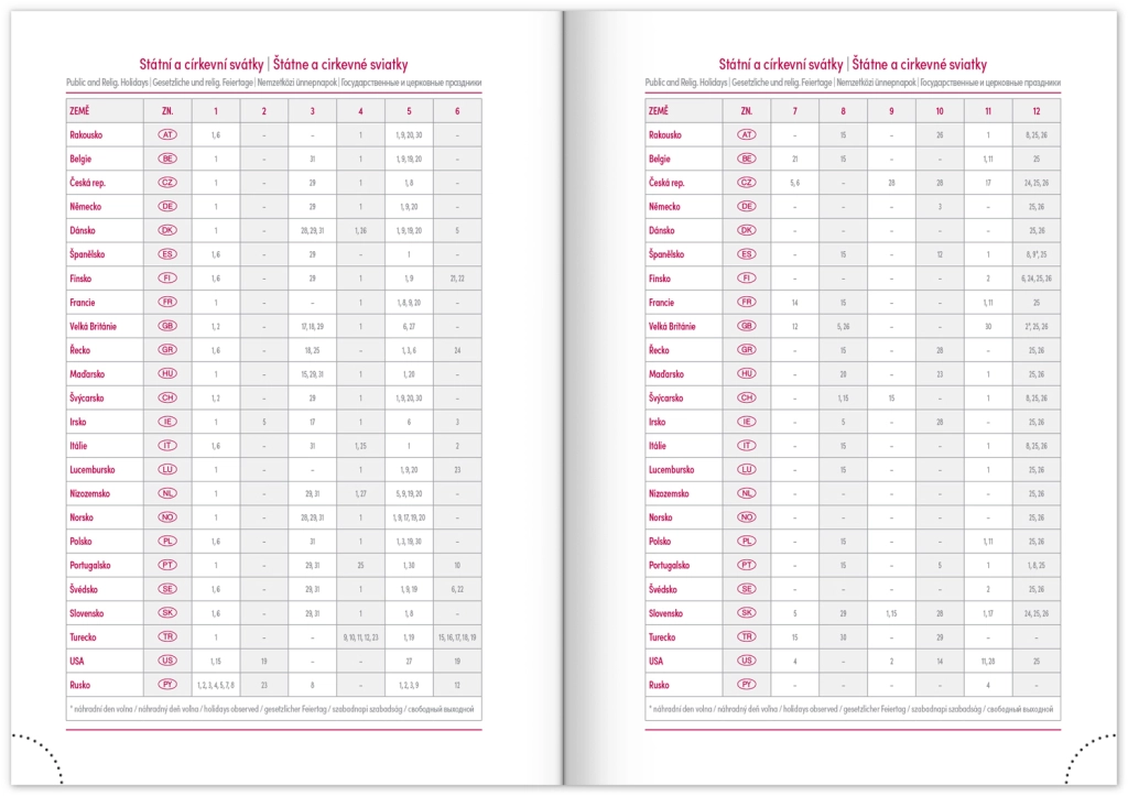 - Čehijas un Slovākijas Republiku svētki un starptautiskās svinamās dienas