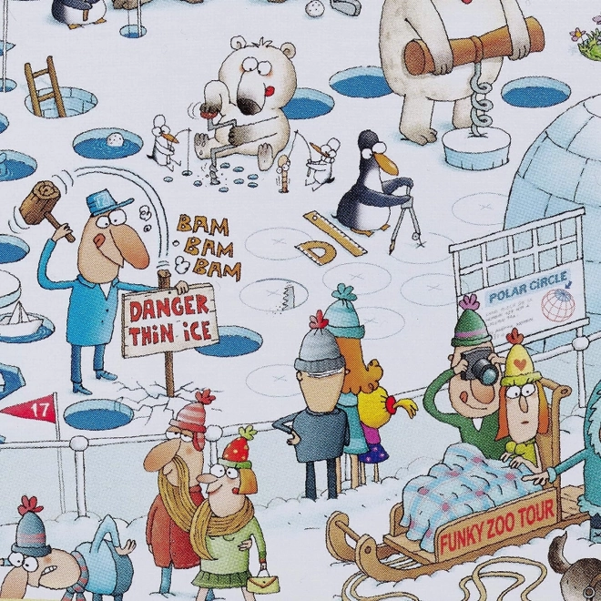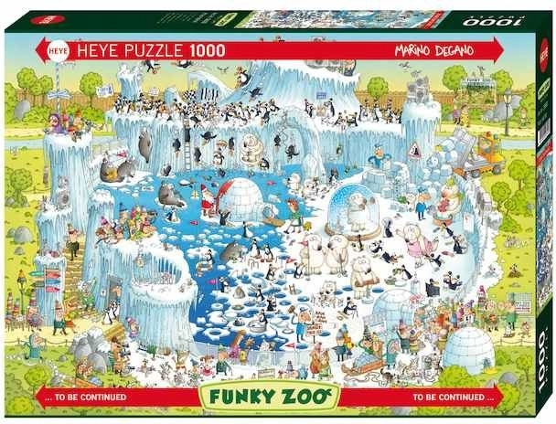 HEYE puzle Trakā ZOO: Polārā ekspozīcija piedāvā lielisku iespēju izveidot savu dzīvnieku valstību mājās ar tūkstošiem gabalu. Lieliska izklaide, ko radījis atzītais karikatūrists Marino Degano, nodrošinās smaidu, meklējot atsevišķos gabaliņus.