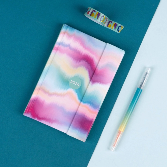 Pasteļtoņu akvareļa motīvs piešķir plānotājam unikālu izskatu, savukārt izmērs 11 × 16 cm nodrošina, ka tas viegli ietilpst jebkurā rokassomā vai mugursomā.