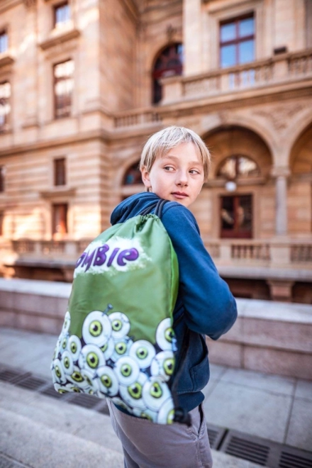 Teicama izvēle zombiju motīvu cienītājiem – šis savilkamais maiss apvieno funkcionalitāti ar rotaļīgu dizainu. Ar izmēriem 34 x 42 cm un izturīgu tekstila materiālu tas ir ideāls sīklietām, kuras vēlaties turēt pa rokai. Pateicoties izturīgajām auklām, to ir viegli aizvērt un nēsāt kā mugursomas maisu.